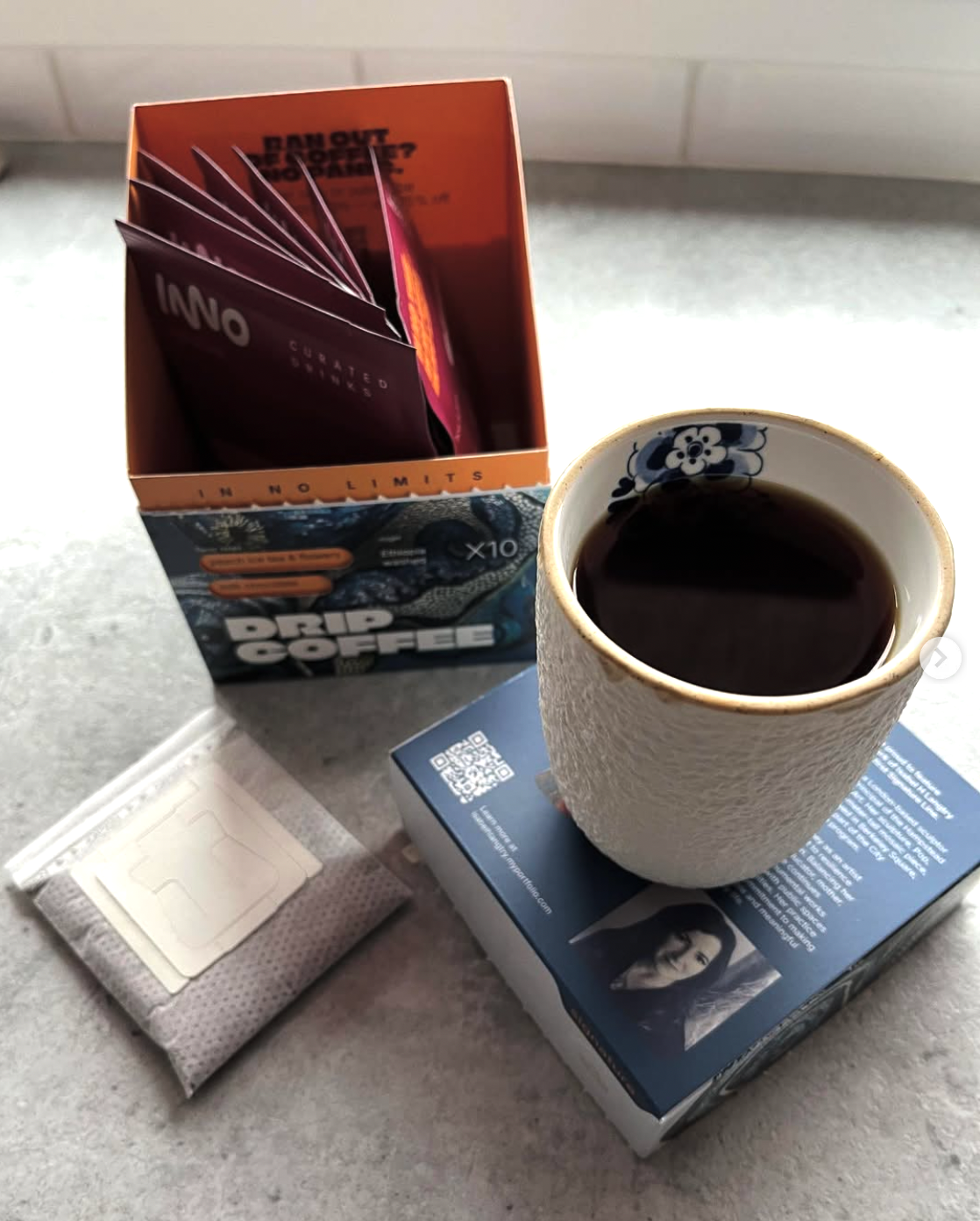 Per 2026 word ik gesponsord door Inno Curated Drinks. Dit koffie merk uit Amsterdam van Yulia en Polina, kenmerkt zich door zakjes met daarin koffie. Je gooit er warm water overheen en dan heb je een kop heerlijke filterkoffie!
